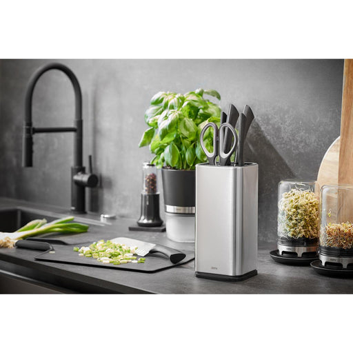 Der superschmale, schräge Messerblock bietet durch seinen flexiblen Kunststoffeinsatz viel Platz zur individuellen Aufbewahrung von Messer aller Ar...