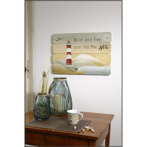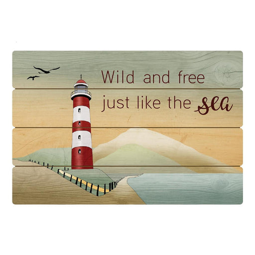 Bild - Lighthouse mit Spruch "Wild and free just like the sea" Kühle Farben, klare Linien, Sehnsucht nach Meer und endloser Weite. Der Leucht...