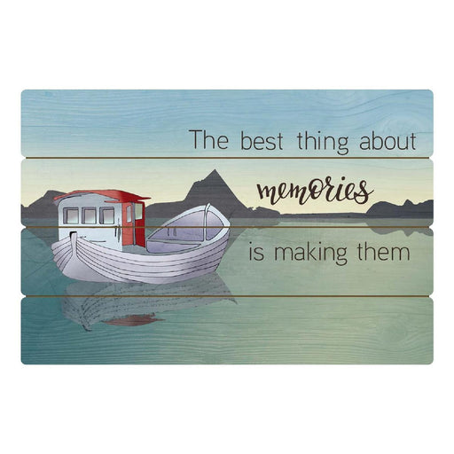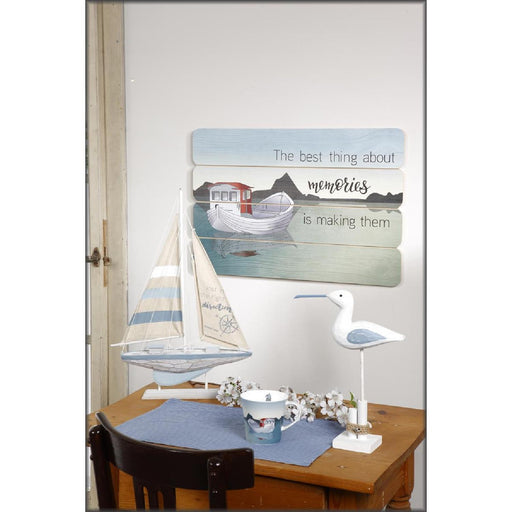 Bild - Fishing Boat mit Spruch "The best thing about memories is making them" Kühle Farben, klare Linien, Sehnsucht nach Meer und endloser We...