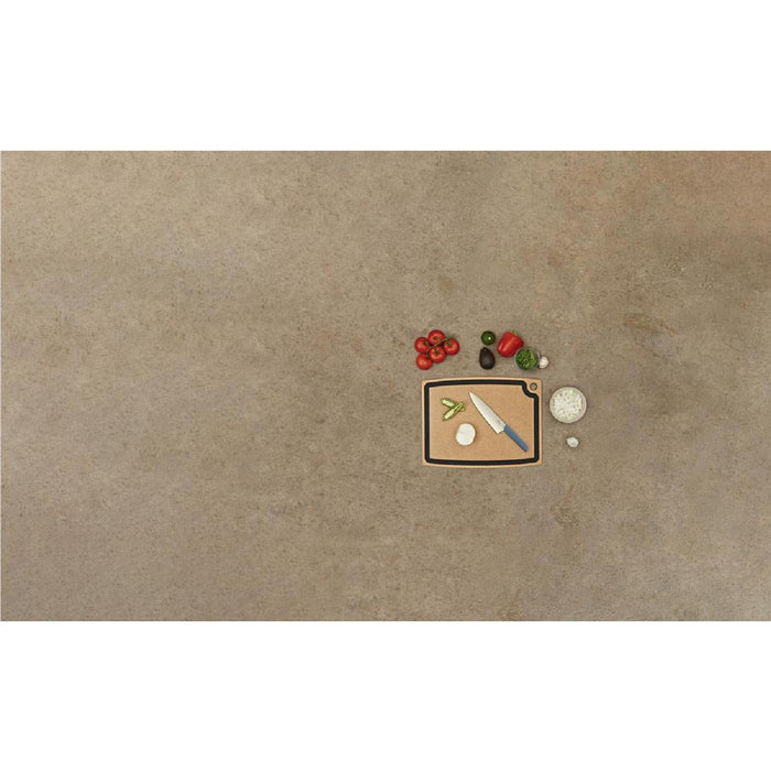 Mit dem stilvollen, nachhaltigen Gourmet Series Schneidebrett (49,5 x 38cm) machen alltägliche Küchenarbeiten einfach Spass. Das Schneidebrett aus Papierverbundstoff ist elegant, schlank und langlebig zugleich. Dank klingenschonender Oberfläche und Hitzebeständigkeit bis zu 175 °C ist es geeignet zum Schneiden und Hacken, zum Zubereiten und zum Servieren. Die praktische Saftrille hält die Arbeitsfläche sauber. So macht Kochen Spass.