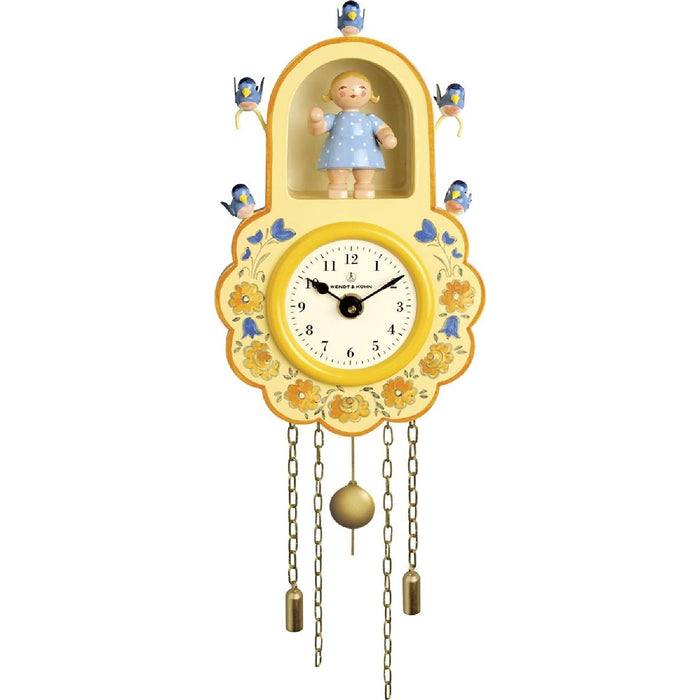 Wanduhr, gelb mit Mädchen und Vögeln 5202/1 von Wendt & Kühn: