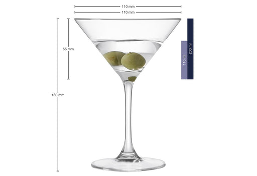 Das Martiniglas ist ein Muss für jede Hausbar. Die klassische Form mit den schräg zulaufenden Seiten, bieten einen eleganten Rahmen für Ihren Dry o...