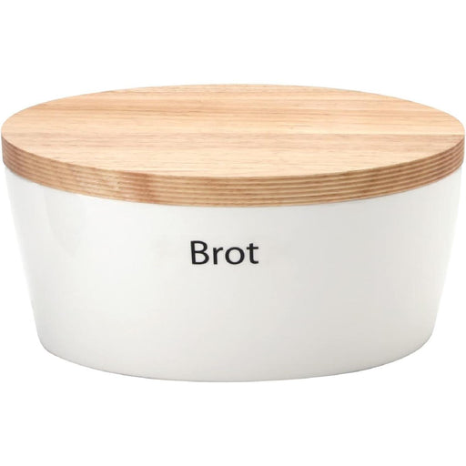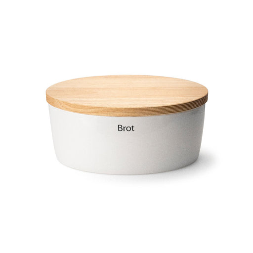 Der praktische Brottopf aus weißer Keramik passt mit seinem helle Holzdeckel in jede Küche. Das Brot bleibt frisch durch gute Belüftung. Die Rückse...