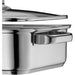 Mit einem Dampfgarer wird Kochen zur Wellnesskur: Den Zutaten schenkt er vollstes Aroma, dem Küchenchef nimmt er Arbeit ab. Und das funktioniert ganz leicht. Der Dampfgarer ist ein geschlossenes System für den Herd. In den rechteckigen unteren Teil füllen Sie eine kleine Menge Wasser oder Fond und legen die Zutaten nebeneinander auf das Garblech. Ein Glasdeckel schließt die kleine Garküche luftdicht ab, das integrierte Thermometer misst zuverlässig die Temperatur. Jetzt haben Sie Pause. Das Wasser beginnt zu sieden, Dampf steigt auf. Fisch, Fleisch, Gemüse werden gar, ohne mit dem Wasser in Berührung zu kommen. Nichts brennt an oder trocknet aus, und im Dampf bleiben die Vitamine weitgehend erhalten. Mit einem Porzellaneinsatz gelingen sogar Flans und Puddings. WMF Dampfgarer sind aus rostfreiem Edelstahl, besitzen Kaltgriffe und einen TransTherm® Allherdboden.