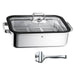 Mit einem Dampfgarer wird Kochen zur Wellnesskur: Den Zutaten schenkt er vollstes Aroma, dem Küchenchef nimmt er Arbeit ab. Und das funktioniert ganz leicht. Der Dampfgarer ist ein geschlossenes System für den Herd. In den rechteckigen unteren Teil füllen Sie eine kleine Menge Wasser oder Fond und legen die Zutaten nebeneinander auf das Garblech. Ein Glasdeckel schließt die kleine Garküche luftdicht ab, das integrierte Thermometer misst zuverlässig die Temperatur. Jetzt haben Sie Pause. Das Wasser beginnt zu sieden, Dampf steigt auf. Fisch, Fleisch, Gemüse werden gar, ohne mit dem Wasser in Berührung zu kommen. Nichts brennt an oder trocknet aus, und im Dampf bleiben die Vitamine weitgehend erhalten. Mit einem Porzellaneinsatz gelingen sogar Flans und Puddings. WMF Dampfgarer sind aus rostfreiem Edelstahl, besitzen Kaltgriffe und einen TransTherm® Allherdboden.