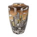 Die farbreduzierten Töne kombiniert mit glänzendem Gold lassen das Motiv auf der Vase in einem ganz besonderen Licht erstrahlen und bringen die imposanten Bauwerke von Fazzino zum Leuchten.