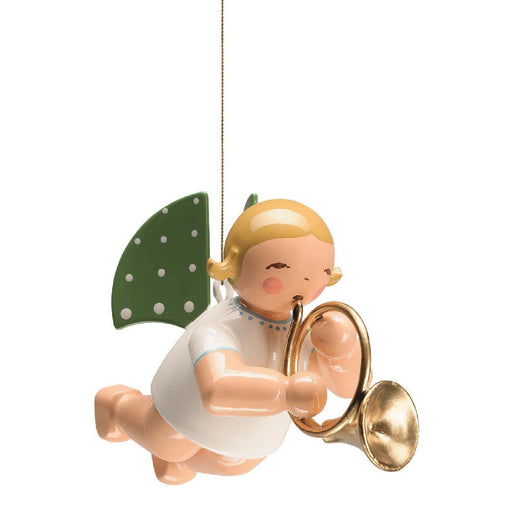 Engel mit Waldhorn, schwebend 650/130/17von Wendt & Kühn: Höhe Figur 5 cm Blond oder braun wird durchsortiert versandt Der Schwebeengel mit W...