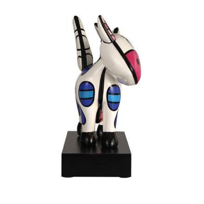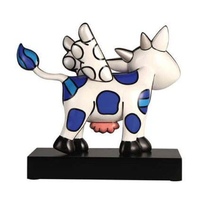 In erster Linie sind Brittos Objekte den Themen Liebe, Freundschaft, Hoffnung und Freude gewidmet. „The Flying Cow" auf schwarzem Holzpostament zaubert dem einen oder anderen Betrachter ein kleines Lächeln ins Gesicht und durch ihr drolliges Design passt diese Figur in jedes moderne Wohnambiente.