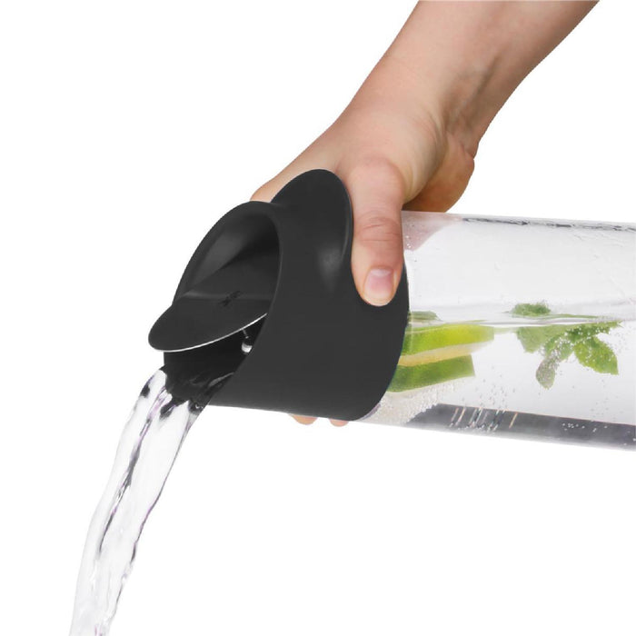 Gezieltes, tropffreies Einschenken: Öffnet und schließt automatisch, dank Kippmechanismus. Das integrierte Sieb hält Eis und Fruchtstücke zurück