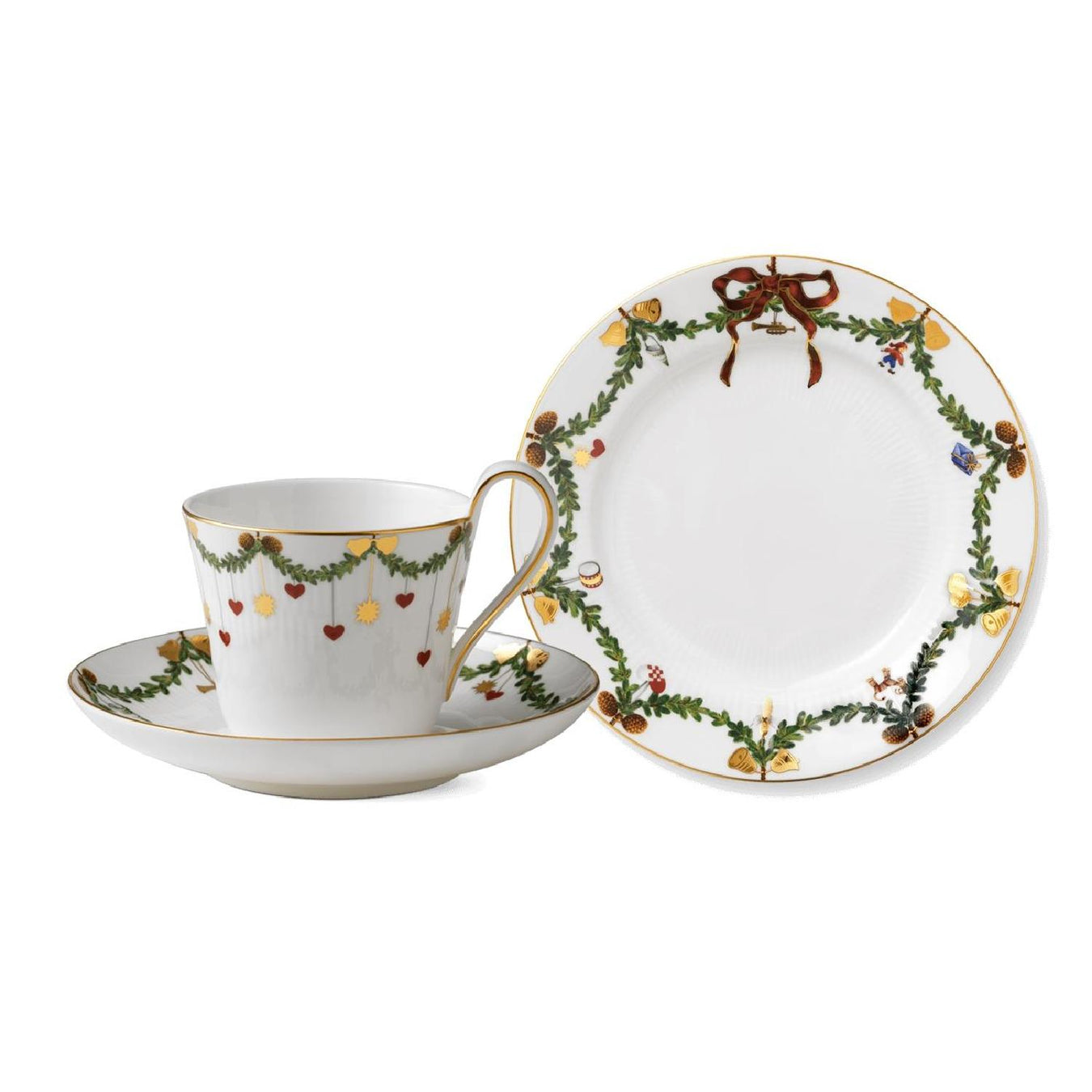Vollständige Details anzeigenRoyal Copenhagen Star Fluted Christmas Weihnachtsgedeck Kaffeetasse mit Unterteller + Kuchenteller