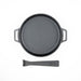 Die runde Gusseisenpfanne von Ooni hat einen abnehmbaren Griff, der speziell dafür entworfen wurde, um das Essen leichter vom Ofen zum Untersetzer aus rostfreiem Stahl zu transportieren.