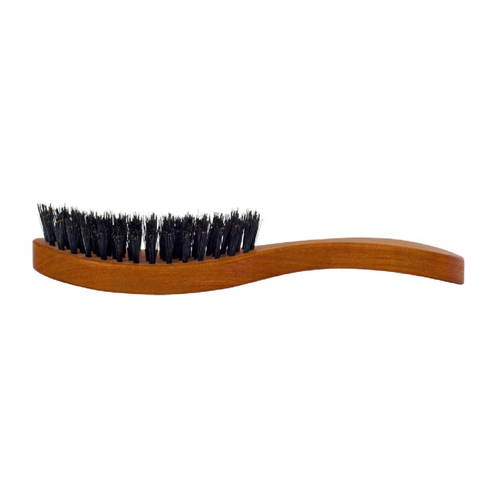 das geschwungene Holz ist der Kopfform angepasst, greift gut langes Haar