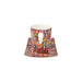 Vögel zählen zu den beliebtesten Motiven des Künstlers James Rizzi. Ganz im typischen Wimmelbild-Stil hat sich ein lebhafter Schwarm auf der Tasse und dem passenden Unterteller niedergelassen.