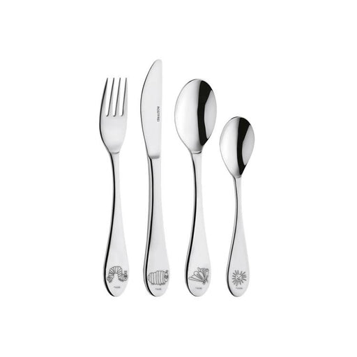 Das Cilio Kinderbesteck Seaworld im 4-teiligen Set verbindet verspieltes Design mit hochwertiger Verarbeitung. Gefertigt aus rostfreiem Edelstahl i...