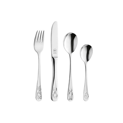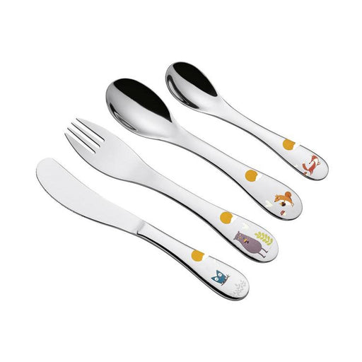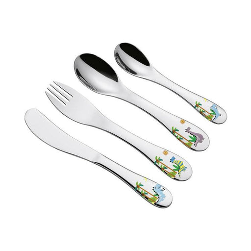 Kinderbesteck 'Kids Tiere' 4-teilig aus Edelstahl, rostfrei, hochglänzend, in Geschenkverpackung.