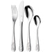 Das Kindermesser hat einen leichten Wellenschliff. Der Laffenrand des Löffels hat abgerundete Kanten. Die kurzen stumpfen Zinken der Kindergabel passen sich kleinen Kindermündern an