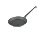warmgewalztes Grobblech, geprägt, Pfannenboden geschlagen, rustikales Aussehen, mit geschmiedetem Hakenstiel am Pfannenboden angeschweißt, höhere Verdichtung - bessere Brateigenschaft. Für alle Herdarten geeignet (Elektro – Ceran – Gas – Induktion – offenes Feuer). Wichtig: Kochstelle gleiche Größe wie Pfannenboden, um Beschädigung der Pfanne zu vermeiden. Die Pfannen sind kratz- und schnittfest und besitzen somit eine enorme Lebensdauer. Ø 24 cm, H 3,5 cm