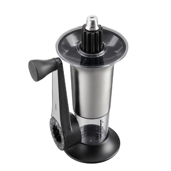 - abnehmbare Kurbel, kann platzsparend an die Mühle gesteckt werden