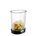 - transparenter, ergonomisch geformter Auff angbehälter für direktes Sammeln der Obst- und Gemüsescheiben