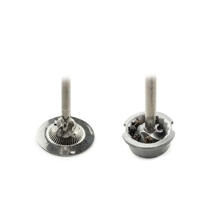 Der schlanke Körper mit den länglichen Kurven enthält das leistungsstarke Peugeot-Mahlwerk. Das Holz hat einen sanften und subtilen Griff für einen angenehmen und einfachen Gebrauch. Der Knopf oben auf der Mühle dient zur Einstellung des Mahlgrades: je stärker er festgezogen wird, desto feiner ist das Mahlgut.
