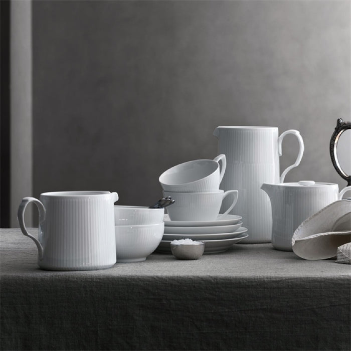 White Fluted wurde 1775 als Grundform des legendären Blue Fluted Plain geschaffen, dem berühmtesten handbemalten Tafelservice von Royal Copenhagen. Heute können die schönen Muster in ihrer reinsten Form, als White Fluted, weiß und elegant erfahren werden. Frei von Farbe oder Motiven ist jedes Stück Weiß Gerippt gleichmäßig und elegant; ein Beweis für die Wertschätzung von Form und Funktion in seiner reinsten Form.
