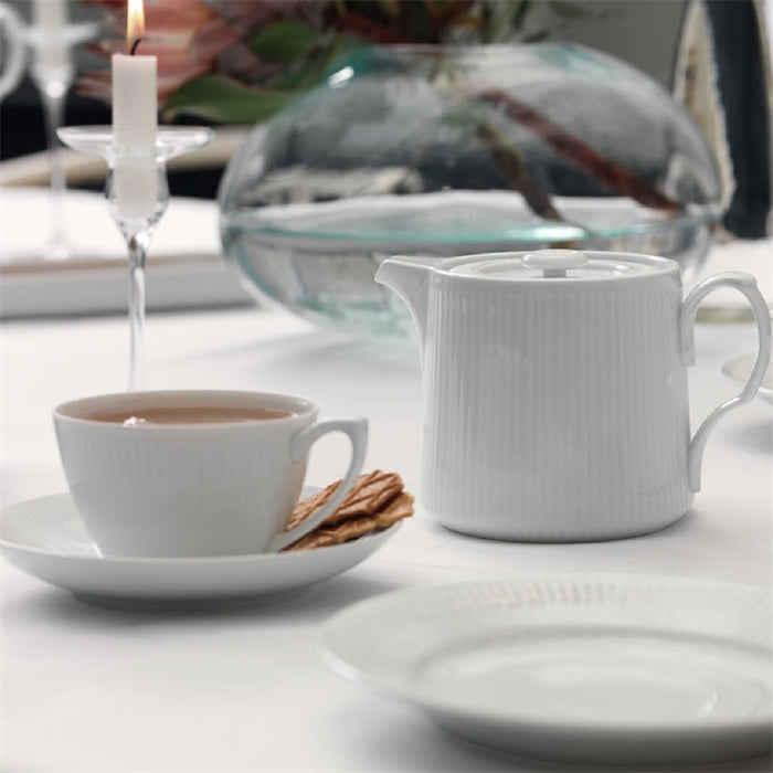 Die runde Form dieser White Fluted Teekanne (75 cl) wird durch einen schlichten Ausguss und einen Griff ergänzt, die den zeitlosen Stil der White Fluted Kollektion verkörpern. Die Porzellankanne ist mit klassischen Rippen und einem raffinierten Deckel verziert.