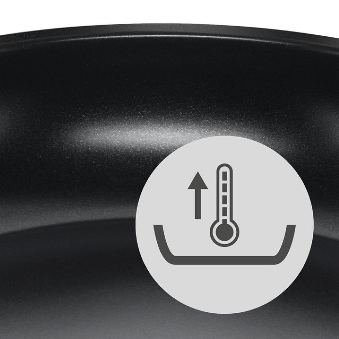 Keramische Antihaftbeschichtung (PTFE-frei). Fettarmes, gesundheitsbewusstes Braten ohne Ankleben. Hitzebeständig bis 400°C, backofenfest bis 70°C