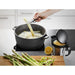 Die innovative Finger-Fixierung und der flexible Griff sorgen für das perfekte Schälergebnis bei Spargel oder Möhren. Die gebogene Klinge aus hochwertigem japanischem Klingenstahl passt sich der Rundung des Schälgutes an und mit dem integrierten Messer werden Enden entfernt.