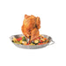 Setzen Sie das fertig gewürzte Hähnchen auf den Halter ? und ab in den Kugelgrill (oder in den Backofen). Während das Geflügel außen gleichmäßig bräunt, wird es von der verdunstenden Flüssigkeit innen sanft dampfgegart und aromatisiert.