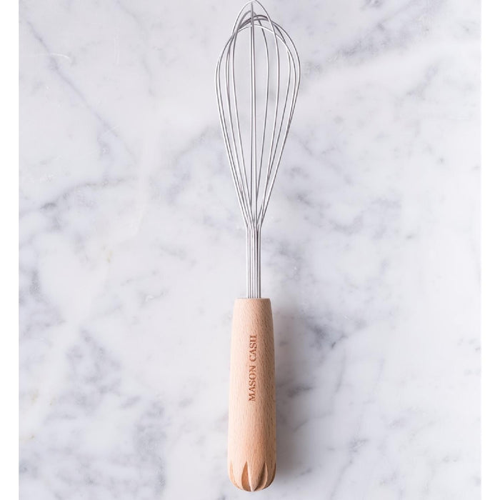 - einerseits Edelstahl-Schneebesen zum Schlagen von Eiern, Sahne und Kuchen Mischungen