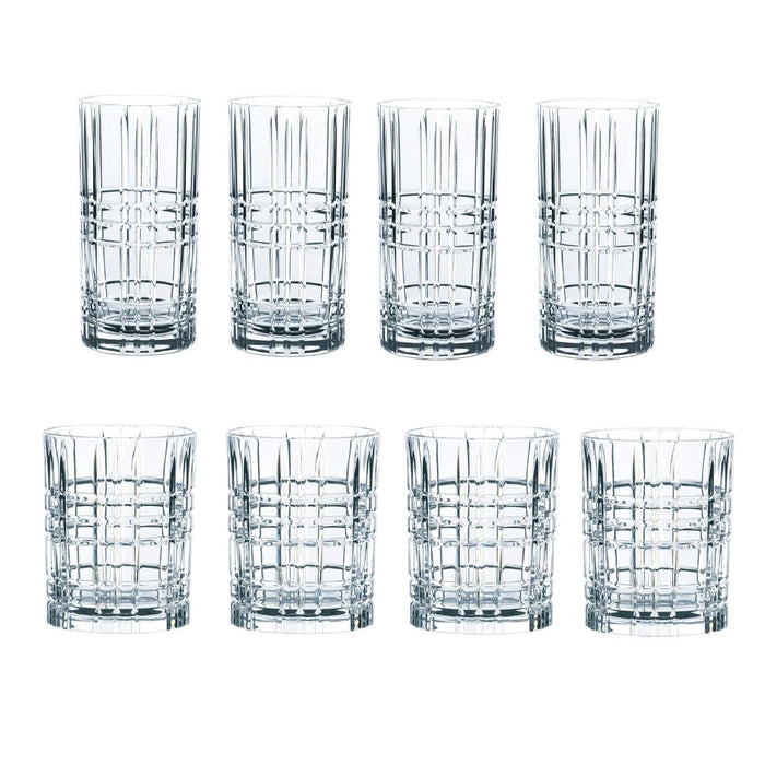 Nachtmann, 8-teiliges Gläser-Set, Kristallglas, Square, 4 Longdrink + 4 Whisky