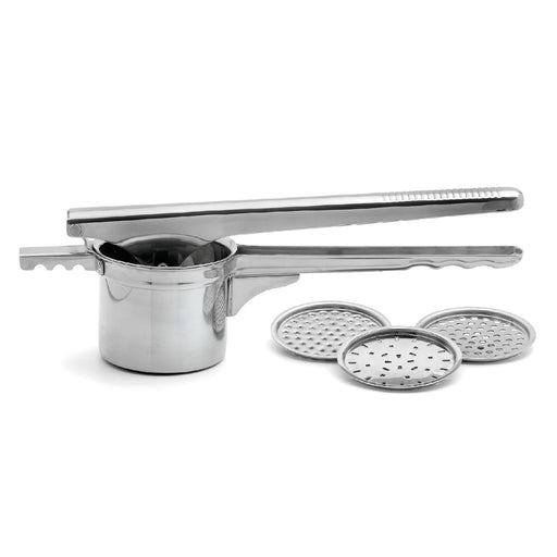 Stabile Edelstahlausführung mit drei auswechselbaren Lochscheiben. Zum Pürieren von Kartoffeln, Obst und Gemüse sowie zur Herstellung von Spagetthi...