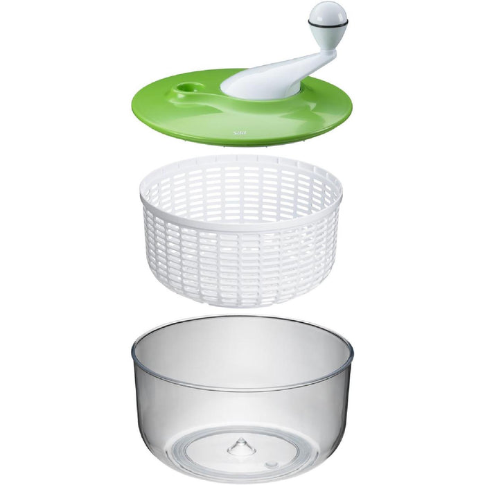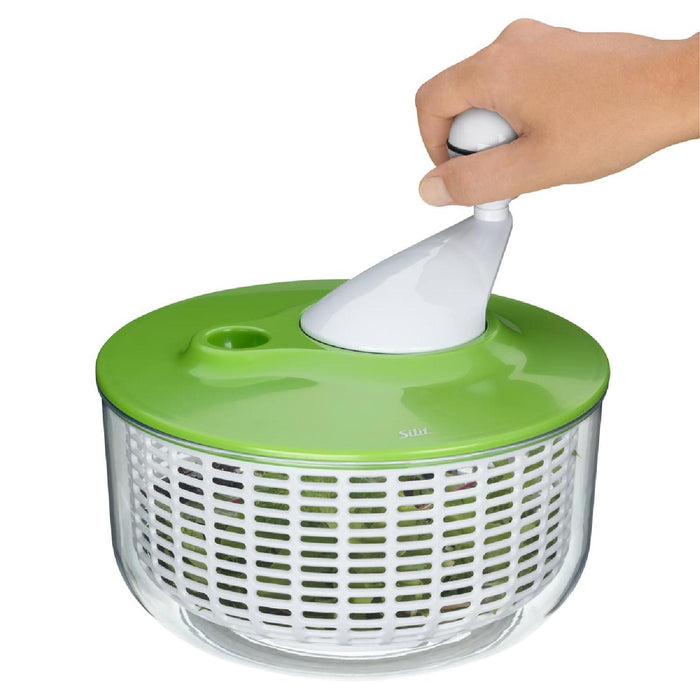 In den Salatschleudern von Silit waschen und trocknen Sie sowohl Salat als auch frische Kohl- und Spinatblätter im Handumdrehen. So geht's: Spülen Sie Ihren Salat im Kunststoffsieb zunächst gründlich ab, setzen Sie anschließend das Sieb in die Schüssel, verschließen Sie diese mit dem Deckel und schleudern Sie munter drauflos. Durch das Trocknen mit bewährter Seilzugtechnik nehmen die Salatblätter das Dressing besser an, es verwässert nicht. Eine Salatschleuder ist ein praktischer Küchenhelfer, den Silit in verschiedenen Designs anbietet.