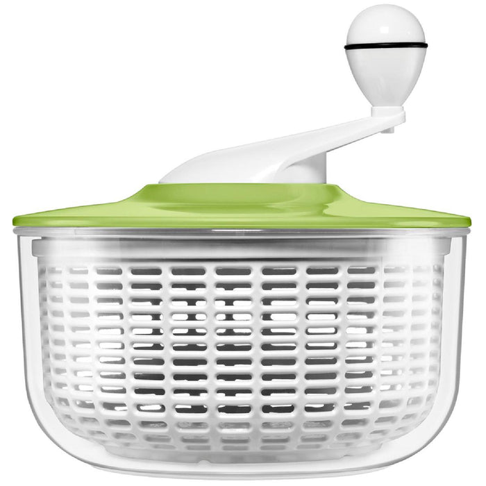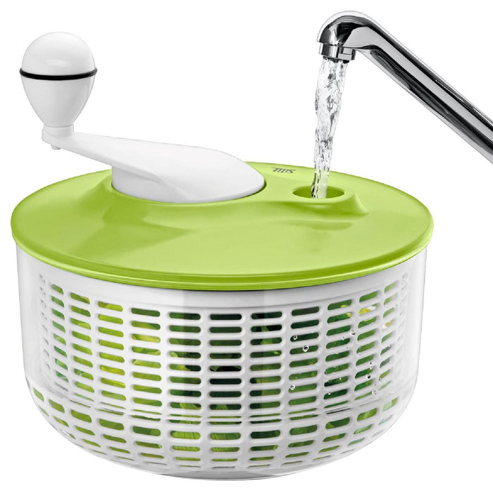 Einfache und sichere Handhabung durch Kurbelmechanismus. Der Kurbelmechanismus ermöglicht ein Regulieren der Schleudergeschwindikeit bei empfindlichen Speisen. Perfekt geeignet zum Waschen und Trocknen von Salat, Kräutern und Beeren.
