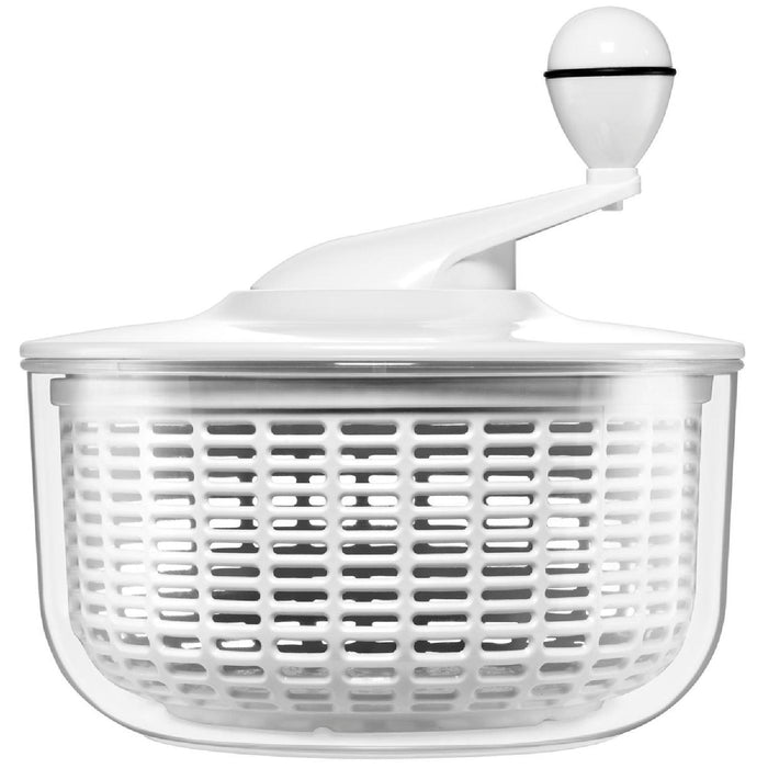 Einfache und sichere Handhabung durch Kurbelmechanismus. Der Kurbelmechanismus ermöglicht ein Regulieren der Schleudergeschwindikeit bei empfindlichen Speisen. Perfekt geeignet zum Waschen und Trocknen von Salat, Kräutern und Beeren.