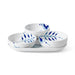 The Blue Fluted Mega Serving Set consists of four beautiful pieces that can all be used on their own or together. Two small bowls and one slightly larger sits on a triangle shaped dish for easy storage and moving around. A truly versatile set for snacks or small tapas servings.