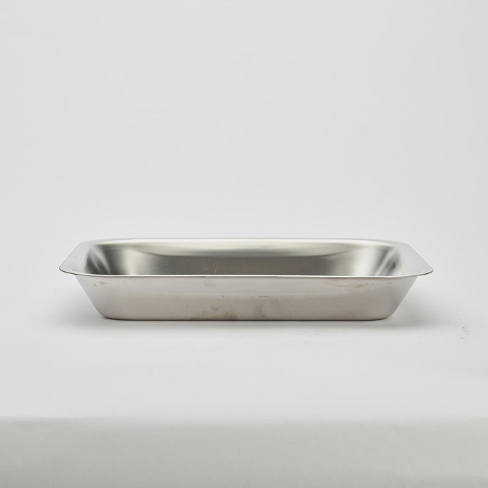 Behälter aus Edelstahl. Verwendbar als Marinadebehälter und dann als Servierplatte. Stoßfest. Spülmaschinenfest