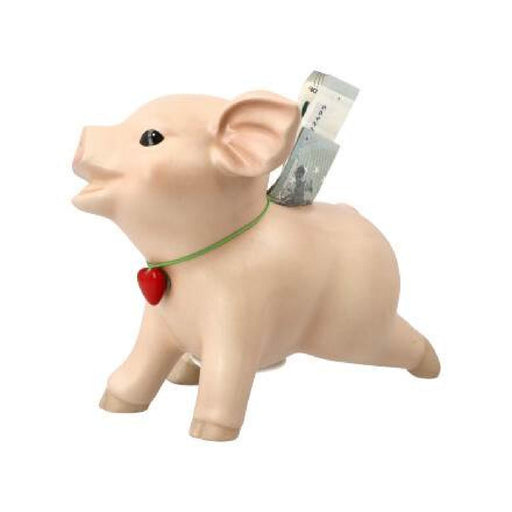 Rosi liebt Münzen und Scheine - hier ist das Geldgeschenk perfekt aufgehoben! Sparschwein Rosi mit Herzanhänger und weißem Stöpsel Mit viel Li...
