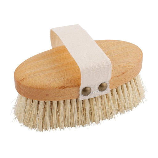 Massagebürste mit Baumwollgurt unbehandeltes Buchenholz weiche, helle Borste Größe: 13,5 cm Artikel-Nr.: 601060