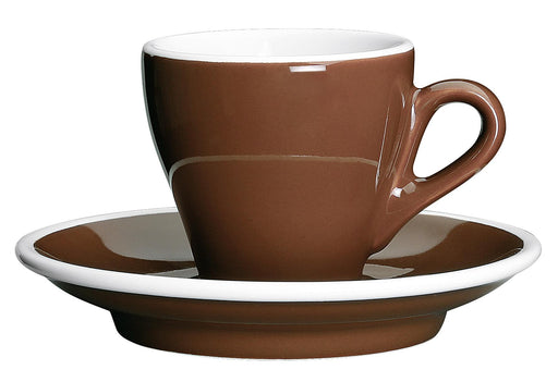 Espressotasse "Milano" mit Untertasse, Porzellan, extra dickwandig, hält den Inhalt länger heiß, Farbe: marone, Maße: 50 ml, Ø 6,5 cm, H 6 cm.