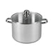 Der Topf ist mit einem Glasdeckel ausgestattet, der einen praktischen Rundknopf besitzt, sodass der Kochvorgang jederzeit überwacht werden kann. Die Hohlgriffe ermöglichen ein sicheres Handling, da sie während des Kochens nicht heiß werden. Der gebördelte Rand sorgt für zusätzliche Stabilität und erleichtert das Ausgießen von Flüssigkeiten.