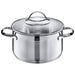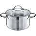 Die genieteten Griffe des Edelstahl-Kochtopfs bieten einen sicheren Halt und werden während dem Kochvorgang nicht heiß. Der Glasdeckel ohne Dampföffnung ermöglicht es den Garvorgang zu beobachten