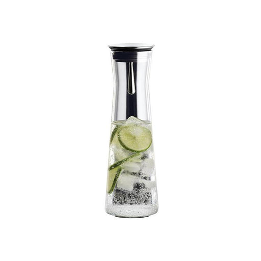 Hochwertige Edelstahl-Glas-Kombination, Außgießer mit automatischer Verschlussklappe, Karaffe passt in gängige Kühlschrankinnentüren, spülmaschinen...
