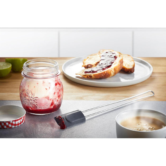 Ideal zum kompletten Entleeren sowohl von Teigschüsseln und Töpfen, als auch von Marmeladengläsern. Zudem wird mit dem hitzebeständigen Teigschaber das Verstreichen von süßer oder pikanter Creme auf Törtchen oder Canapés zum Kinderspiel.