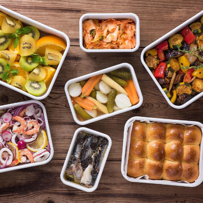 - hochwertige Emaille-Frischhaltedosen mit innovativem Vakuumventil im Deckel