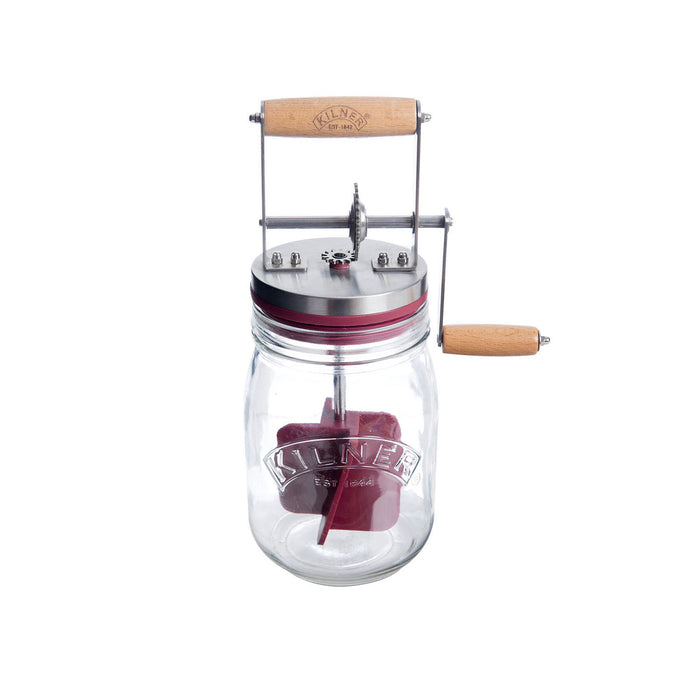 Der Kilner® Butter Churner bietet eine einfache Möglichkeit Butter selbst herzustellen und ist gleichzeitig eine stilvolle Ergänzung für Ihre Küche. Einfach Sahne in den Butterwender geben, den Griff drehen und in weniger als zehn Minuten genießen Sie selbstgemachte, frische und besonders lecker schmeckende Butter! Im Lieferumfang enthalten sind eine leicht verständliche Schritt-für-Schritt-Anleitung sowie eine Auswahl der Rezepte. Perfekt auch für Kräuter-, Knoblauchbutter und mehr.