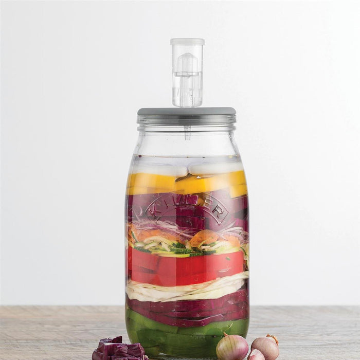 Das Kilner® Fermentations-Set die einfache Gelegenheit, köstliche und gesunde Gerichte herzustellen, selbstgemacht und frei von Zusatzstoffen. Fermentierte Lebensmittel enthalten besonders viele Vitamine, Mineralien und probiotische Kulturen. Das Kilner Fermentier-Set eignet sich perfekt für die Erstellung von Sauerkraut, Kimchi, Gurken, Rotkraut und vielem mehr. Die Herstellung fermentierter Lebensmittel ist besonders einfach. Füllen Sie dazu das Fermentierglas mit Ihrem Lieblingsgemüse, Wasser und Salz auf. Rezepte und Gebrauchsanweisung inklusive.