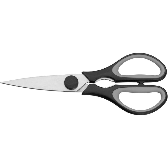 Dank eines integrierter Öffner kann mit der Schere auch Schraubverschlüsse geöffnet werden oder zum Knacken von Nüssen verwendet werden. Die Schere ist für Rechts- und Linkshänder geeignet