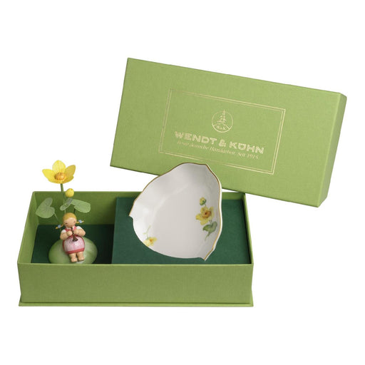 Wendt & Kühn Mädchen mit Sumpfdotterblume, auf Hügel, mit Schale aus Meissner Porzellan