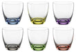 6 Whisky- oder Wasserbecher je 300 ml. Jedes Glas mit einem eganten, dezent farbigen Glasboden dekoriert.